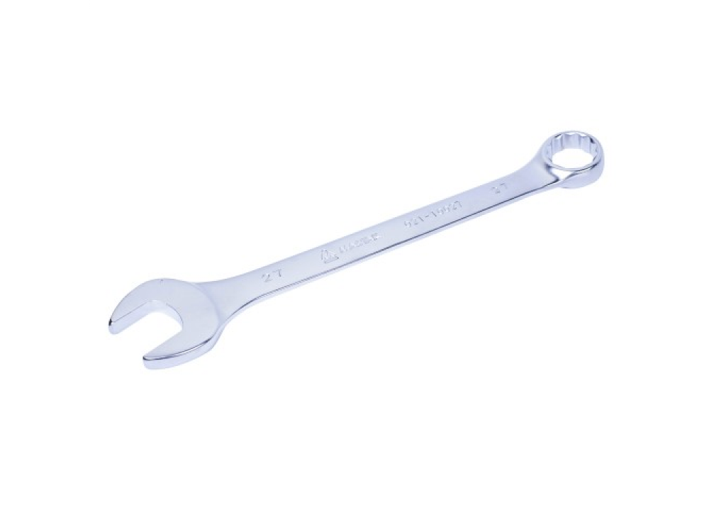 Ключ комбинированный МАСТАК 021-10027H применяется для выполнения любых видов работ с крепежом - как дома, в гараже, в авто-слесарной мастерской, станции технического обслуживания авто, мото и другой техники, так и на производстве. Изготовлен из инструментальной легированной хром-ванадиевой стали специального сплава, состоящего из 15 элементов, входящих в его состав. Хромированное покрытие защищает от коррозии и придаёт благородный матовый оттенок. Особенности: - Специальный изгиб 15° позволит работать в местах с ограниченным доступом к крепежу; - Накидная и рожковая части помогут подобраться к крепежу как с торца, так и с боку, в зависимости от места выполняемых работ; - 12-тигранный профиль накидной части универсален в работе с головками болтов или гайками как 6-ти, так и 12-тигранного профиля. Технические характеристики: - Размер: 27 мм - Длина(L): 310 мм