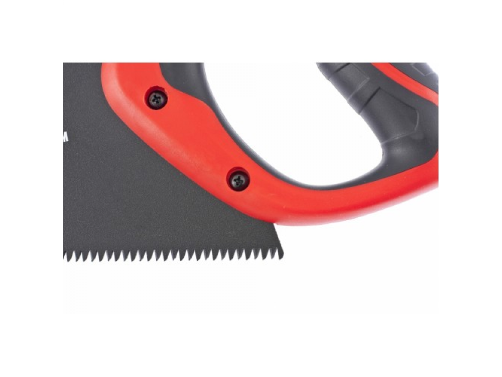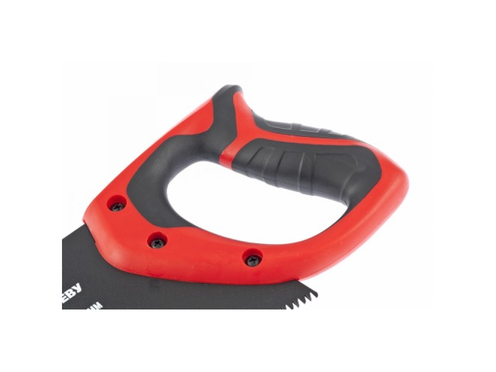 Ножовка изготовлена из холоднокатаной стали марки 65 Mn с твердостью закаленного зуба 50–65 HRc. Трехгранная лазерная заточка зубьев. Количество зубьев на дюйм – 7. Тефлоновое покрытие уменьшает трение полотна о заготовку и защищает его от коррозии. Эргономичная двухкомпонентная рукоятка крепится к полотну тремя винтами.