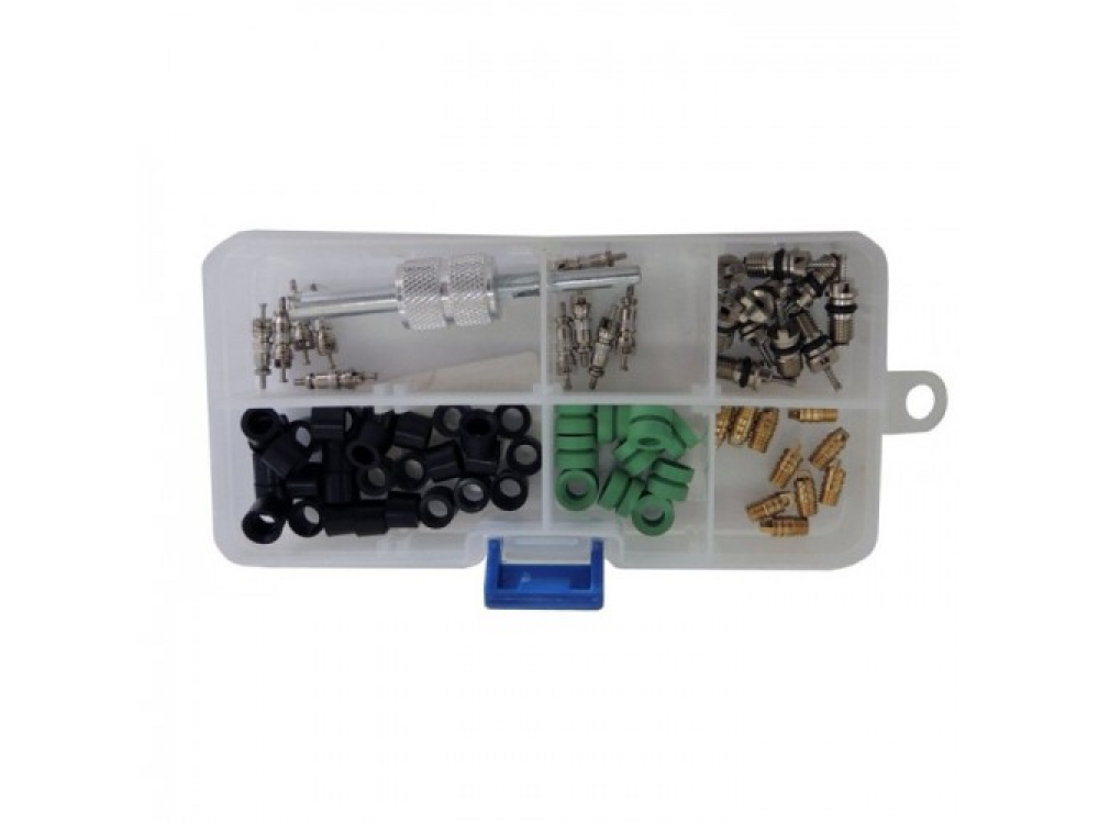 Ремкомплект для штуцеров используется для замены ниппеля в сервисных штуцерах автомобиля системы AC и ремонта сервисных шлангов установки по заправке кондиционеров. Комплектация - Ключ для ниппелей х 1 шт. - Ниппель стандартный х 10 шт. - Ниппель 5/16" х 10 шт. - Уплотнительные прокладки для шлангов 1/4" ( черные) х 30 шт. - Уплотнительные прокладки для шлангов 5/16" ( зеленые) х 10 шт. - Депрессор 1/4" х 10шт.