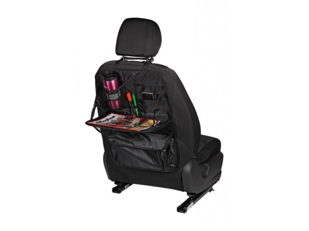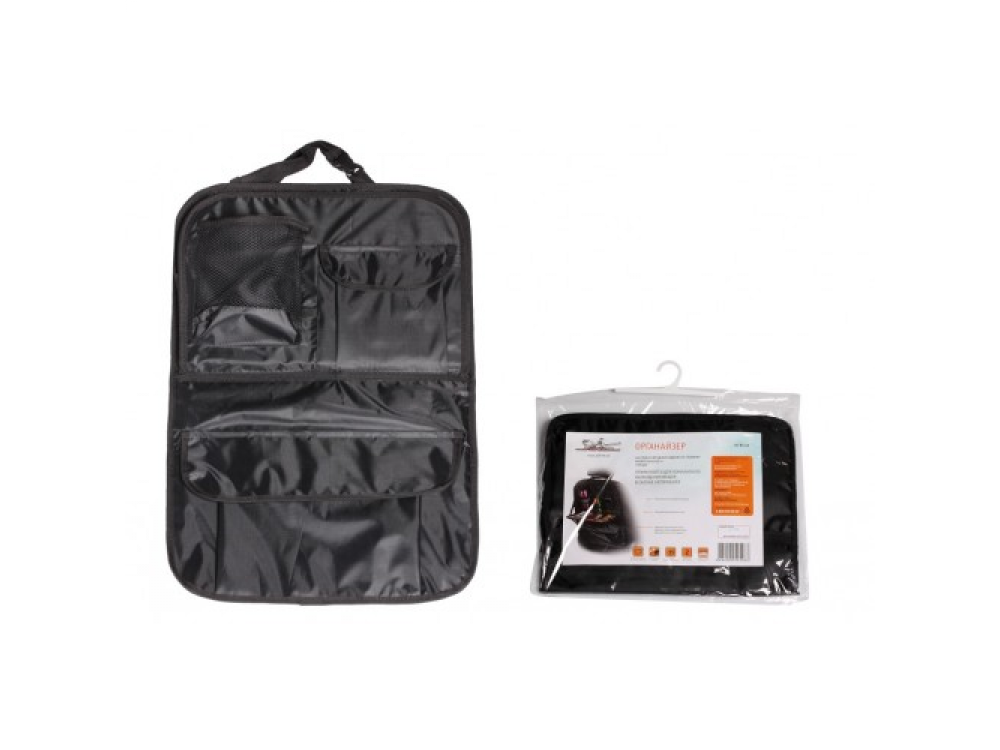 Многофункциональный компактный органайзер на спинку переднего сиденья оснащен удобной системой для хранения предметов различного назначения. На органайзере присутствует «откидной регулируемый столик», отдел для бумаг, карманы для ручек и канцелярских принадлежностей, отделы для гаджетов, а также карманы-подстаканники. Органайзер изготовлен из прочного и легко моющегося материала - 100% полиэстера.