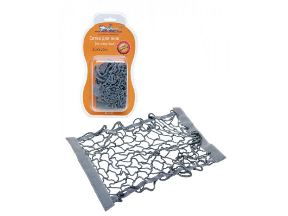 Изделие изготовлено специально для хранения и перевозки в салоне автомобиля мелких грузов. Компактная сетка 25х55 см имеет систему крепления в виде липучек, поэтому изделие идеально подойдет для автомобилей с текстильной обшивкой багажника.