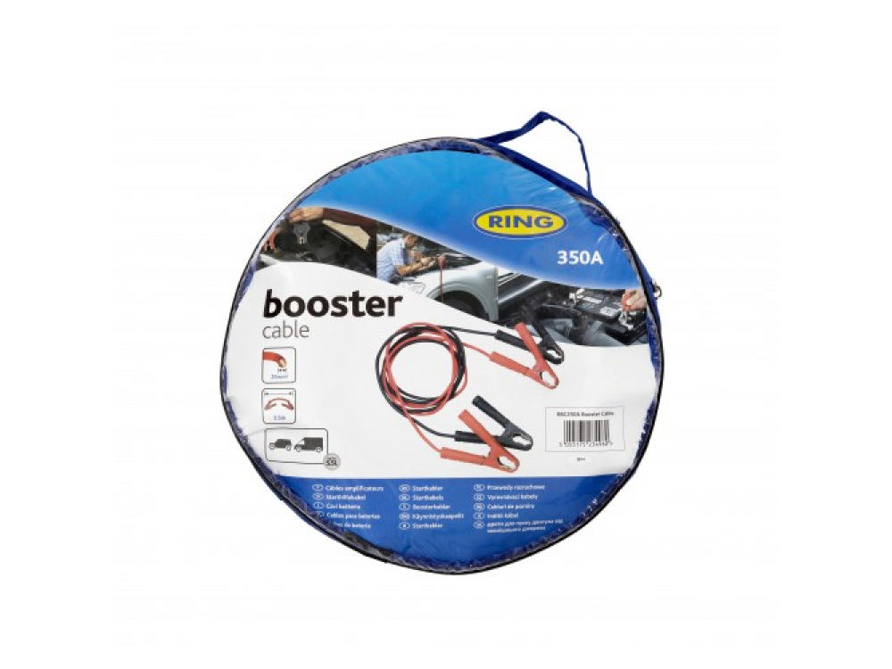 Сверхмощные пусковые кабели с максимальной мощностью 350А. Подходит для автомобилей до 5,5 л. 3,5 м в длину с поперечным сечением 25 мм?. Более устойчивы к интенсивному использованию, чем стандартные пусковые кабели. Полностью изолированные зажимы для дополнительной безопасности и долговечности. Покрыты гибким ПВХ, чтобы их было легко использовать. Поставляется с жестким футляром для хранения.