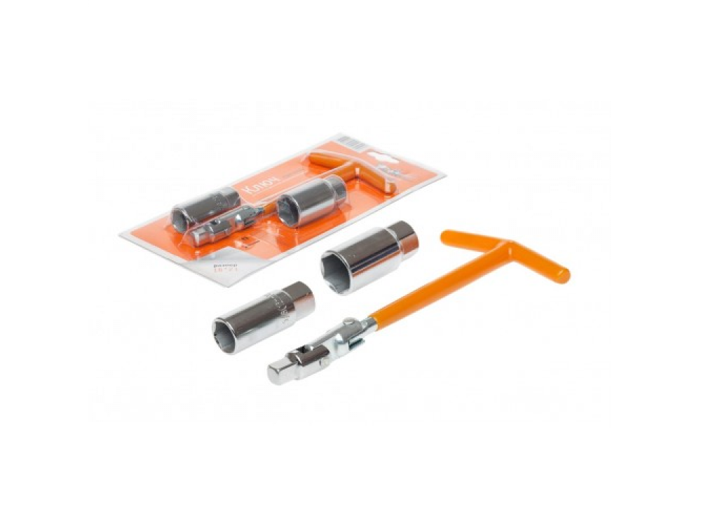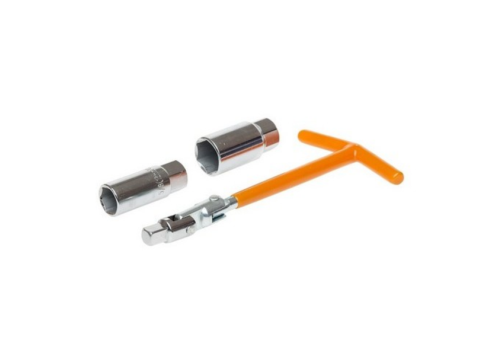 В наборе автомобильных инструментов от AIRLINE представлен свечной ключ с двумя дополнительными головками. Габаритные показатели головок составляют 16 мм и 21 мм. Наличие ключа в салоне автомобиля поможет осуществить самостоятельную замену или регулировку машинных свечей.