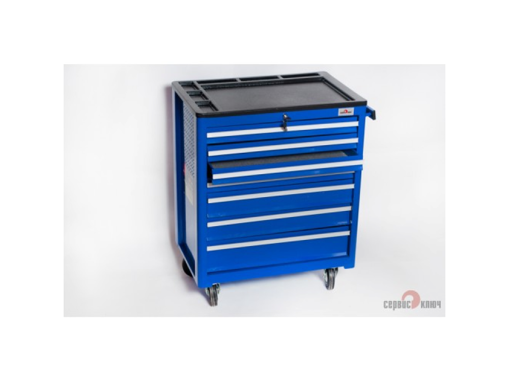 Сервисная инструментальная тележка 6 секций. Столешница 770х450мм. Габариты полок: 4 полки — 530х400х60; 2 полки — 530х400х140.